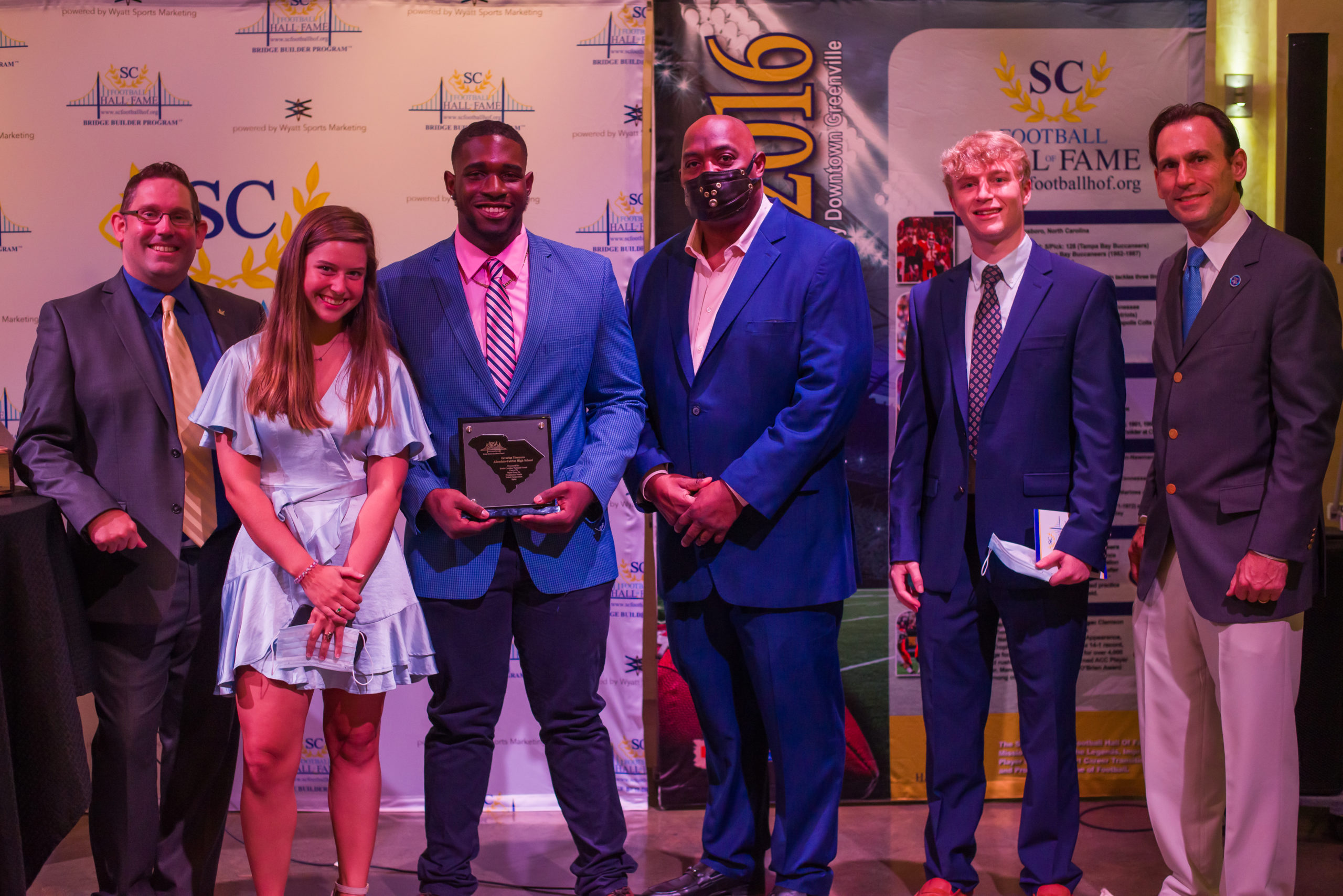 Javarius Youmans an incoming freshman at North Greenville and graduate of Allendale-Fairfax High School receives the inaugural Bridge Builder Excellence Award from the South Carolina Football Hall of Fame on July 23, 2020. (News Story from NGU Athletics)